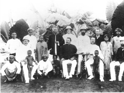 De planters dragen hier de pakken met toetoepjasjes en de tropenhelmen zoals die door Polak van Deventer werden vervaardigd.